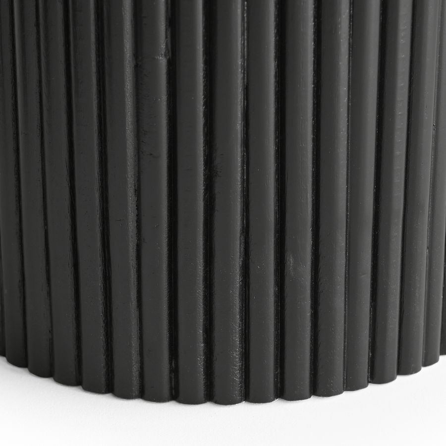 - Double pedestal solid mango wood reeded base in a black finish